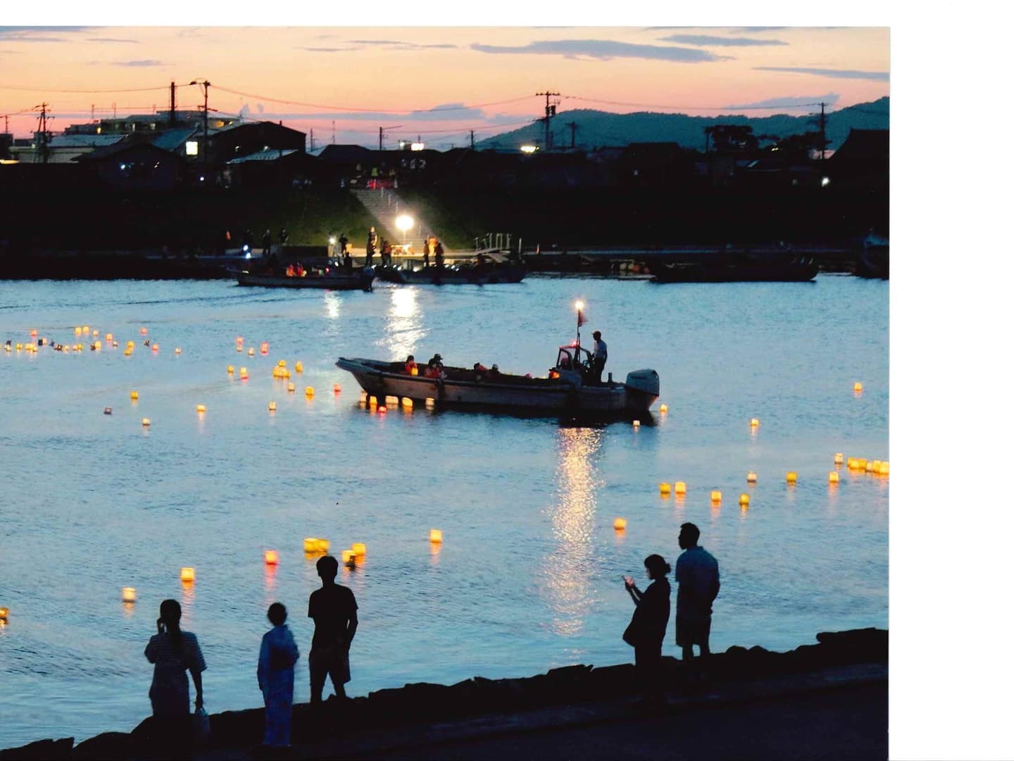 石巻川開き祭りでは、古くから流燈が行われていました。平成23年3月11日に発生した東日本大震災で多くの市民が犠牲になった霊(みたま)を慰めするために流燈が流されます。
