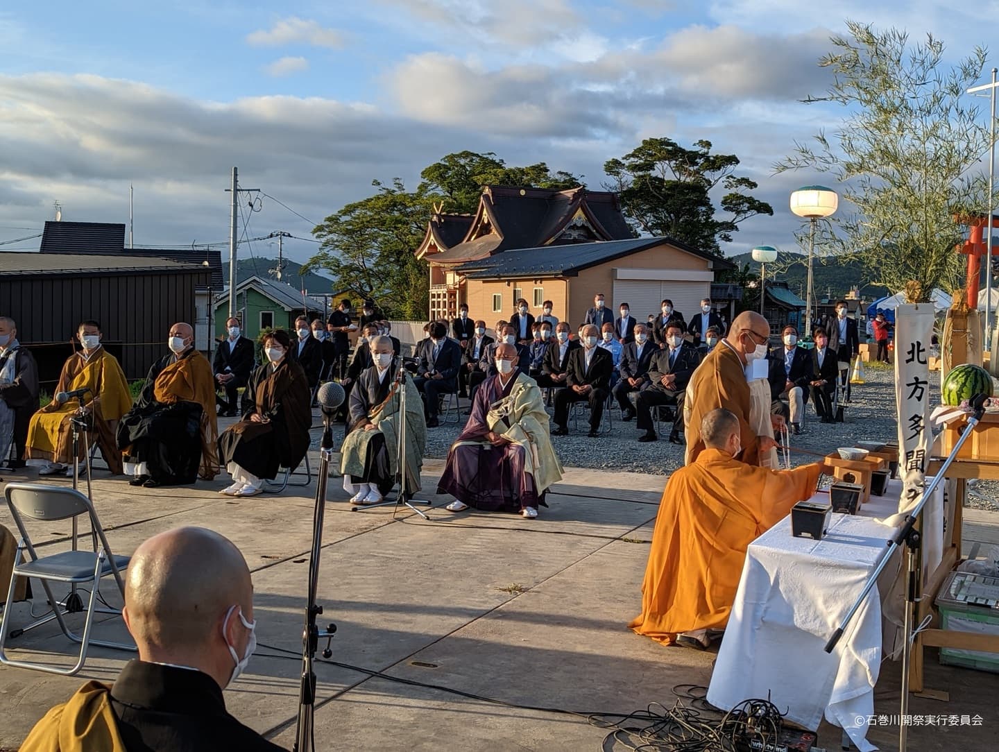 平成23年3月11日に発生した東日本大震災では、石巻市は最大の被災地として多くの市民が犠牲になりました。石巻川開き祭りでは、東日本大震災の犠牲者を慰霊するため、平成23年より行っており、令和5年の第100回記念大会では、13回忌法要を執り行います。会場内には焼香台が設置され一般参列の方もご焼香頂けます。
